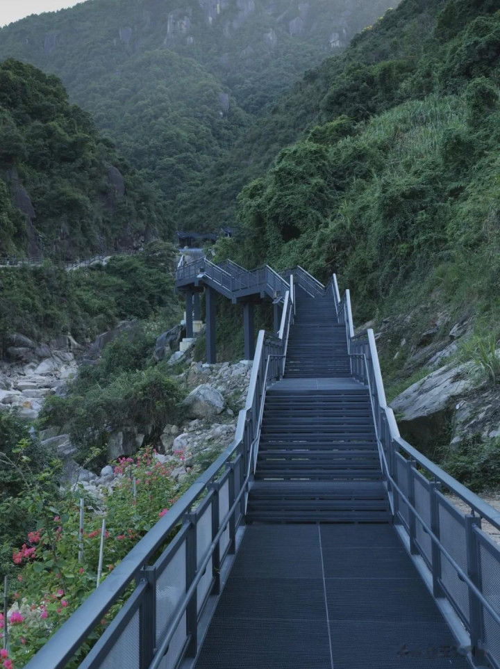溪流相伴,形式如画,走到半山腰的不雅景台,视线豁然清明。向东不错眺望宁德时期厂区的当代工业风貌,向西则能远看三王人澳入海口的碧蓝大海,山海交错,简直东谈主杰地灵、钟灵琉秀。