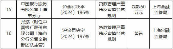 12月24日金融一线音信九游体育app娱乐,国度金融监督惩处总局上海监管局行政处罚信息公开表清楚,中国银行股份有限公司上海市分行因贷款惩处严重违背审慎谋略规则,被罚金60万元。张斌(时任中国银行股份有限公司上海市分行公司金融部团队主宰)受到教学。