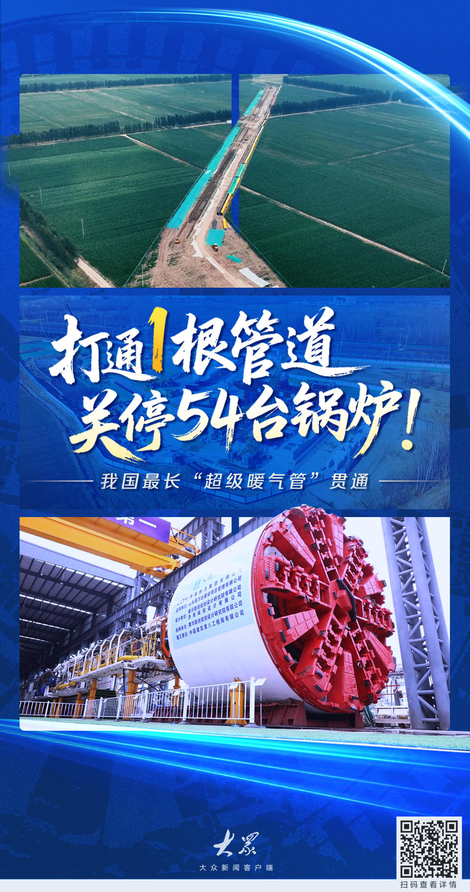 【买通1根管说念,关停54台汽锅!“聊热入济”,我国最长“超等暖气管”主张】