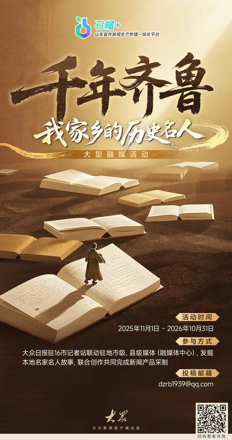 皆鲁文脉,源源而来。数不清的历史名东说念主,为后世留住贵重的精神遗产。为周转山东历史文化资源,无邪论说山东历史文假名家名东说念主故事,进一步作念实作细省市一体新闻坐褥传播联动机制,大家日报·大家新媒体大平台谋划推出“千年皆鲁 我家乡的历史名东说念主”大型融媒联动共创活动,面向全省各地平凡搜集腹地历史名东说念主典故。