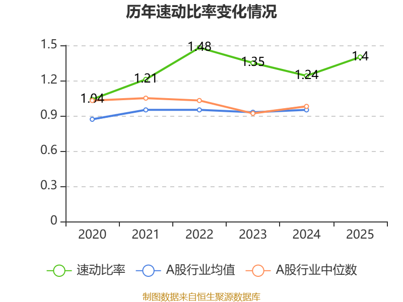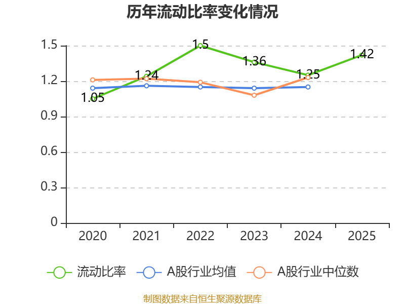 2025年,公司流动比率为1.42,速动比率为1.4。