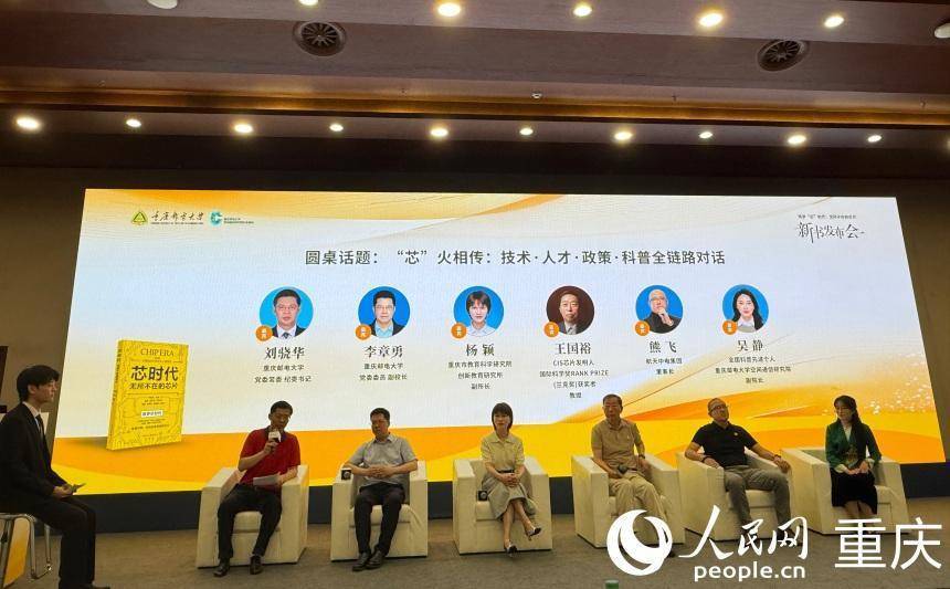 新书发布庆典后,主题为“芯火相传:技巧·产业·东说念主才·策略·科普全链路对话”的圆桌论坛立时张开。重庆邮电大学党委委员、副校长李章勇,重庆邮电大学党委常委、纪委通知刘骁华,重庆市科技局宣传统战与科普处处长张柯,重庆市教师科学接头院变嫌教师接头所副长处杨颖,CIS芯片发明东说念主、国外科学奖Rank Prize(兰克奖)获奖者王国裕,航天中电微电子有限公司董事长熊飞,寰宇科普先进个东说念主、重庆邮电大学空间通讯接头院副院长吴静等各人围绕芯片技巧变嫌、产业协同发展、东说念主才培养、策略复古以及科普施行等话题百家争鸣,潜入换取。
